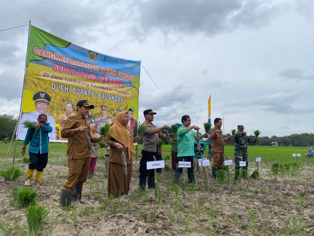 BALANGAN – Dinas Ketahanan Pangan, Pertanian dan Perikanan (DKP3) Kabupaten Balangan, melakukan aksi Tanam Padi Serentak sekaligus mengadakan Syukuran dan Do’a Bersama dengan warga masyarakat Desa Lok Batung, Kecamatan Paringin, Selasa (10/1).