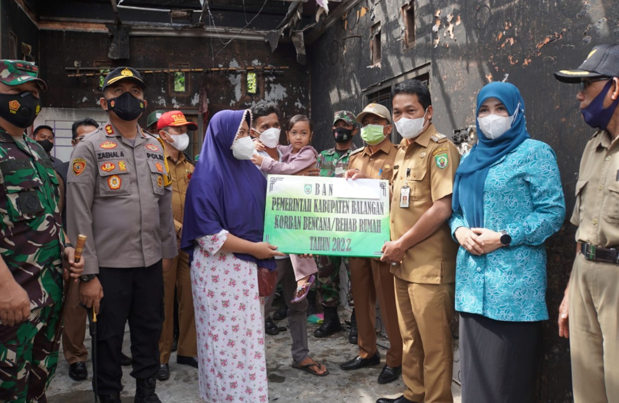 BALANGAN-Bupati Balangan Abdul Hadi dan Ketua TP-PKK Kabupaten Balangan Hj Sri Huriyati Hadi bersama unsur Forkopimda mendatangi rumah warga korban kebakaran di Desa Mantimin, Kecamatan Batumandi, Senin (10/01).