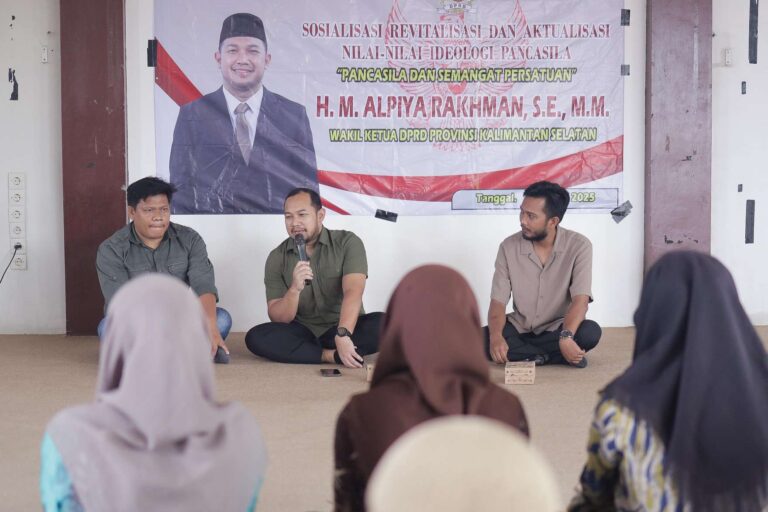 RETORIKABANUA.ID, Tanah Bumbu – Wakil Ketua Dewan Perwakilan Rakyat Daerah (DPRD) Kalimantan Selatan (Kalsel), Muhammad Alpiya Rakhman, kembali menegaskan komitmennya dalam menanamkan nilai-nilai kebangsaan kepada masyarakat. Hal ini ia sampaikan dalam kegiatan Sosialisasi Wawasan Kebangsaan yang berlangsung di Aula Kantor Desa Sinar Bulan, Kecamatan Satui, Jumat (18/7).