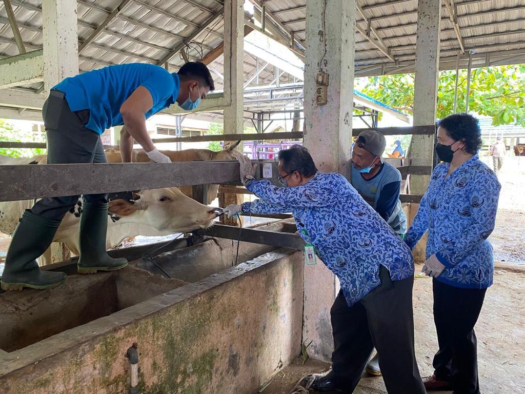 Kadis DKP3 Balangan Tuhalus menyampaikan, salah satu langkah yang dilakukan untuk mencegah masuknya virus PMK dengan melakukan Biosecurity dan penyemprotan disinfektan pada kandang, memberikan penyuntikan vitamin, penguatan imun serta pengawasan intensif terhadap lalu lintas ternak.