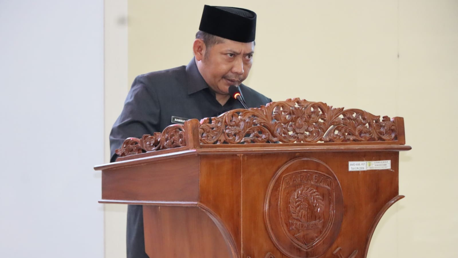 BARABAI- Bupati Hulu Sungai Tengah (HST) Samsul Rizal berpidato untuk yang pertama kali dalam Rapat Paripurna bersama DPRD HST, Senin (3/3/2025) sore.