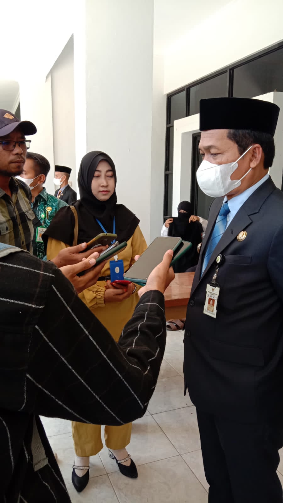 BALANGAN – Usai pelantikan penjabat struktural, fungsional kependidikan di lingkup Pemkab Balangan, Bupati H Abdul Hadi memberikan keterangan pers kepada awak media di Gedung Mayang Maurai, Paringin, Kamis (23/6).