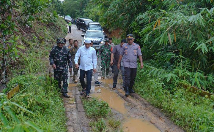 Balangan – Bupati Balangan, Abdul Hadi, memantau progres pembangunan akses jalan menuju wisata Air Terjun Batarius di Desa Mamigang, Kecamatan Halong, Jumat (2/6).