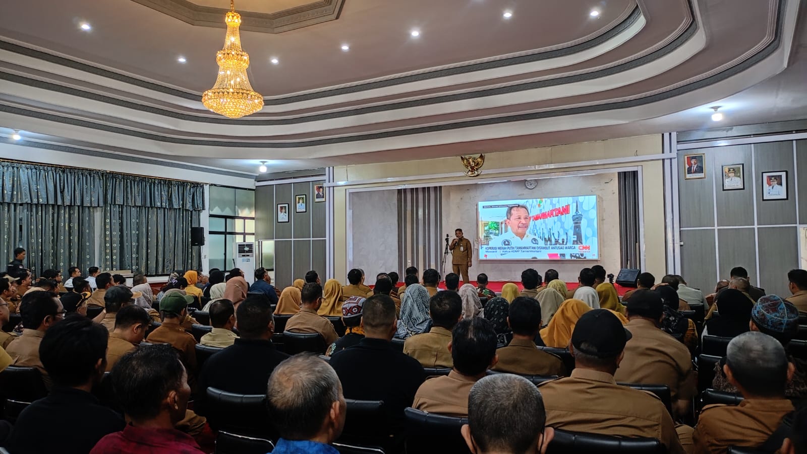 BARABAI- Pemerintah Kabupaten Hulu Sungai Tengah (HST) menyaksikan secara langsung peluncuran Koperasi Desa/Kelurahan Merah Putih yang digelar melalu aplikasi Zoom, bertempat di Pendopo Bupati HST, Senin (21/7/2025).