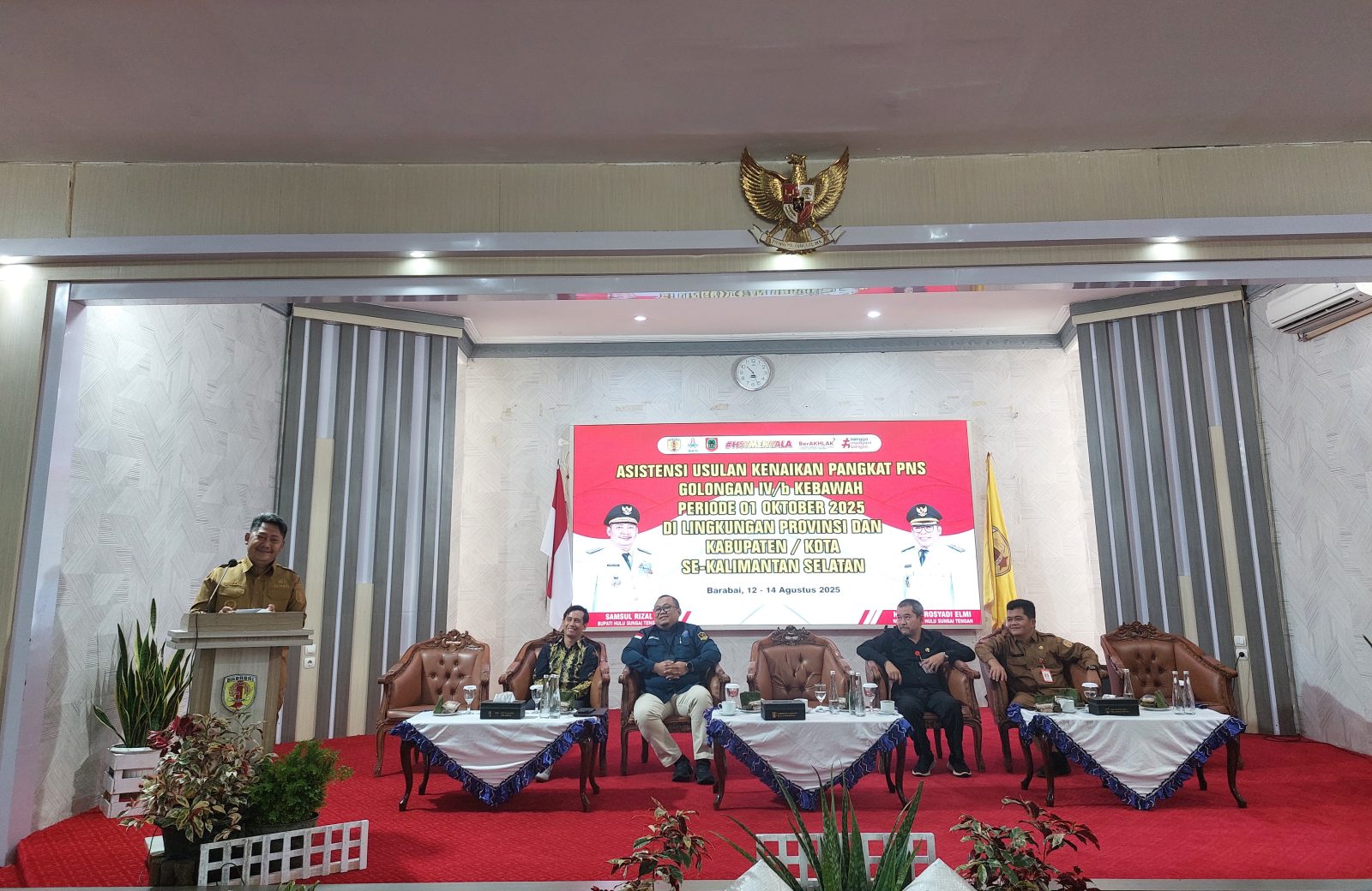 BARABAI – Bupati Hulu Sungai Tengah (HST) Samsul Rizal secara resmi membuka kegiatan Asistensi Usulan Kenaikan Pangkat PNS Golongan IV/b ke bawah Periode 01 Oktober 2025 di lingkup Provinsi dan Kabupaten/Kota se-Kalimantan Selatan.