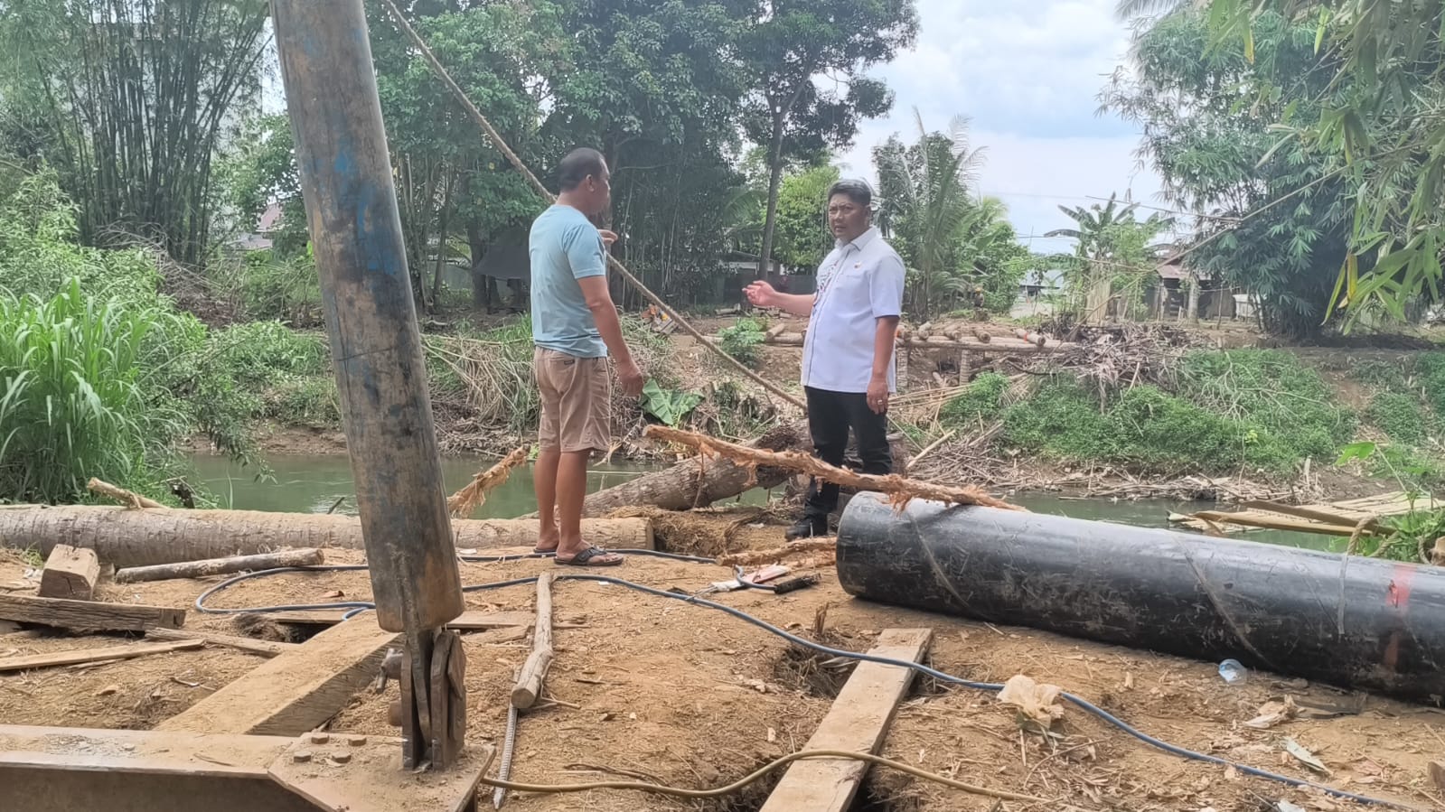 BARABAI- Bupati Hulu Sungai Tengah (HST) Samsul Rizal lakukan peninjauan progres pembangunan jembatan di RT 01 Desa Aluan Bakti, Kecamatan Batu Benawa, Sabtu (23/8/2025) siang.