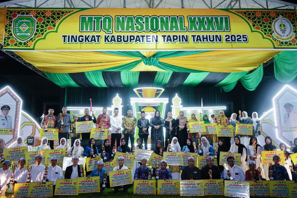 “Saya ucapkan selamat kepada para hafidz, hafizah, mufassir, dan mufassirah yang telah menorehkan prestasi membanggakan. Jadikan ini sebagai awal perjuangan, bukan akhir. Teruslah belajar untuk membawa harum nama Tapin di tingkat provinsi hingga nasional,” ujarnya.