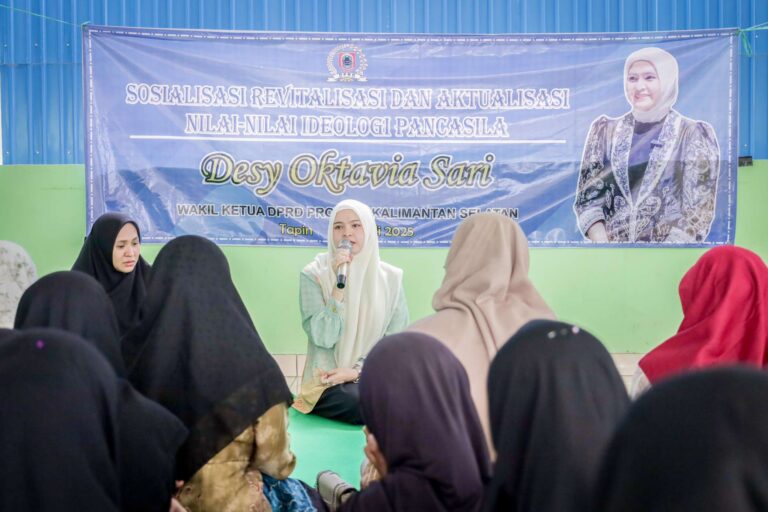 RETORIKABANUA.ID, Tapin – Wakil Ketua Dewan Perwakilan Rakyat Daerah (DPRD) Kalimantan Selatan (Kalsel), Desy Oktavia Sari, menggelar Sosialisasi Revitalisasi dan Aktualisasi Nilai-Nilai Ideologi Pancasila di Pondok Pesantren Siti Khadijah, Kabupaten Tapin, Jumat (18/7). Kegiatan ini diikuti puluhan pelajar dan guru, sebagai bagian dari penguatan karakter kebangsaan berbasis pesantren.