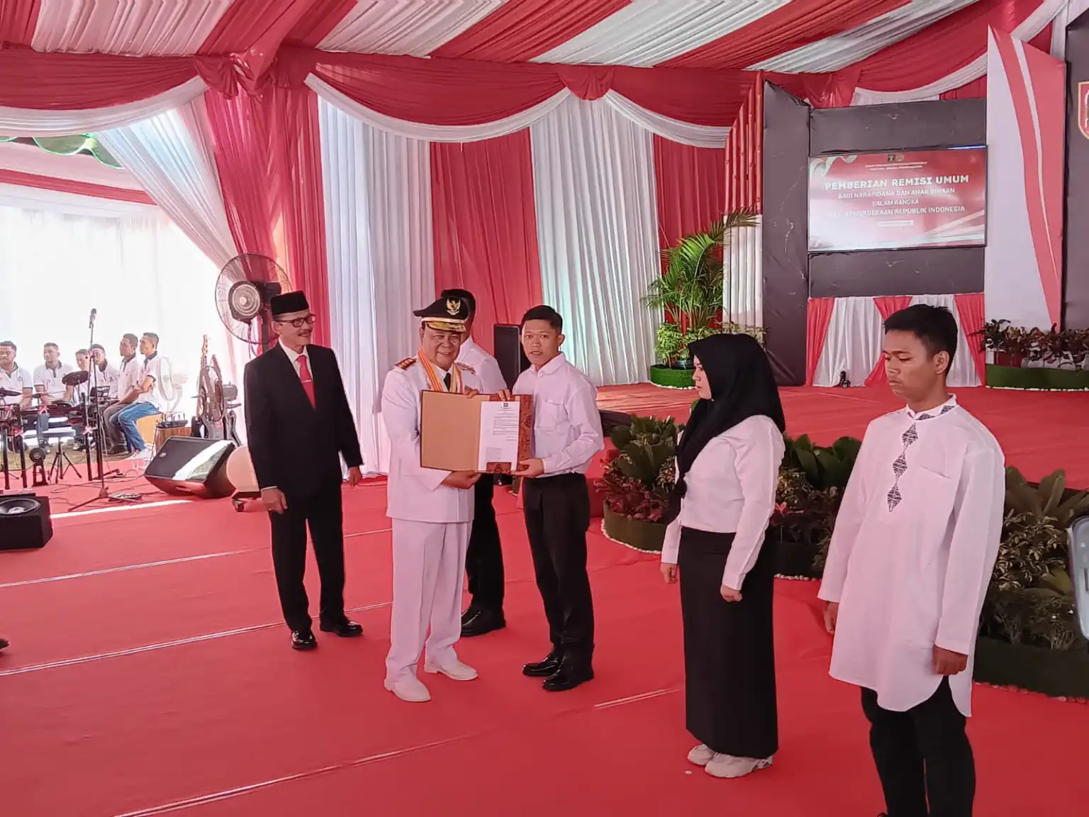 Sementara itu,Gubernur Kalimantan Selatan Sahbirin Noor atau Paman Birin menyampaikan Sambutan Menteri Hukum dan HAM serta sekaligus menyerahkan secara simbolis remisi kepada narapidana.