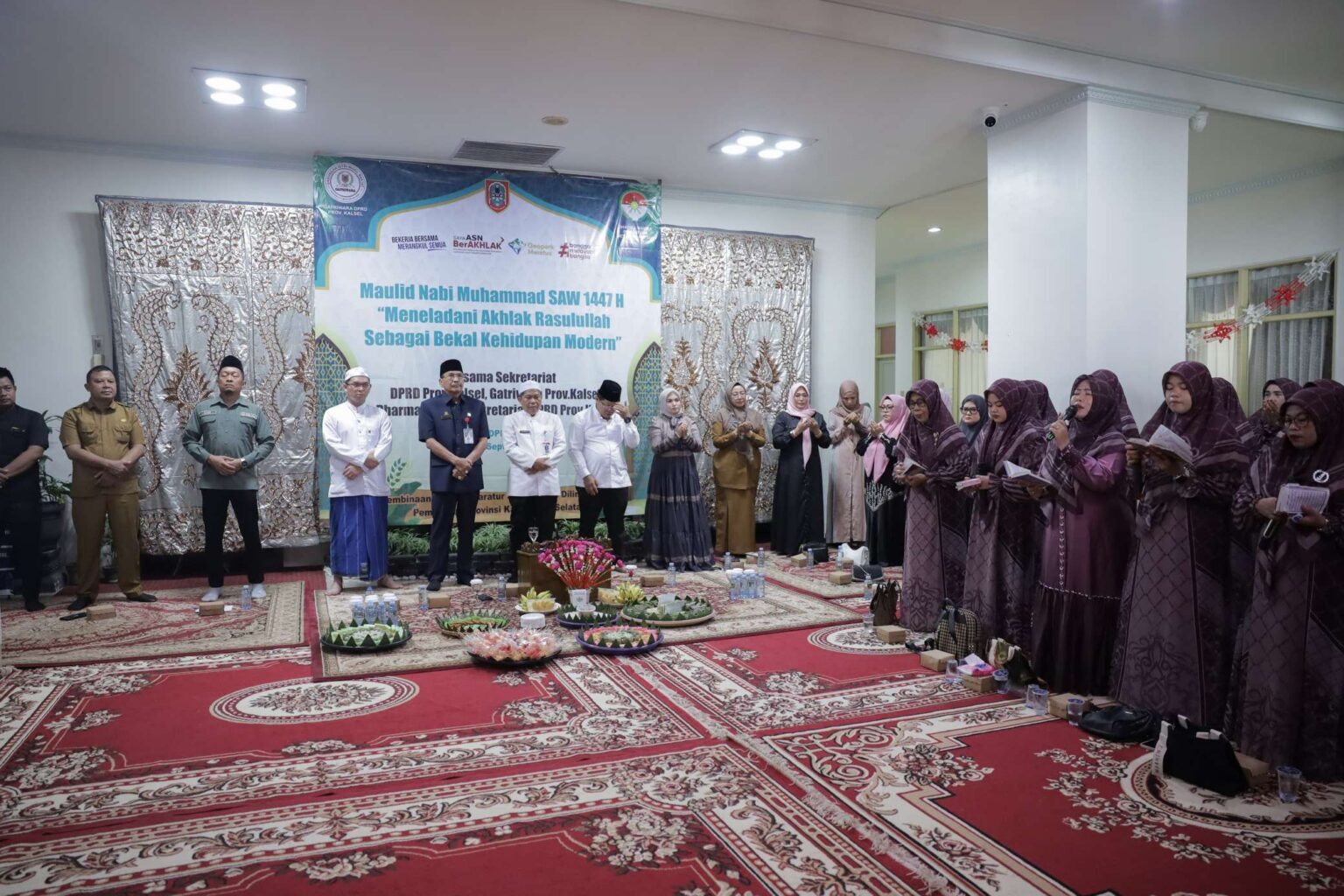 Mengusung tema “Meneladani Akhlak Rasulullah SAW Sebagai Bekal Kehidupan Modern”, kegiatan ini dihadiri oleh Ketua DPRD Kalsel, Supian HK beserta istri yang juga Ketua Gatriwara Kalsel, Farida Supian HK, Sekretaris DPRD Kalsel, Muhammad Jaini beserta istri Rizki Audina Jaini selaku Ketua DWP Sekretariat DPRD, serta jajaran ASN dan pegawai di lingkungan sekretariat.