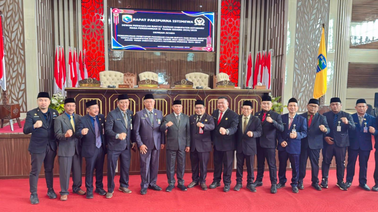 RETORIKABANUA.ID, Kotabaru – Dewan Perwakilan Rakyat Daerah (DPRD) Kabupaten Kotabaru menggelar Rapat Paripurna Istimewa untuk mengumumkan penetapan pasangan calon Bupati dan Wakil Bupati terpilih periode 2025–2030, Senin (13/1), di ruang sidang Paripurna DPRD Kotabaru.