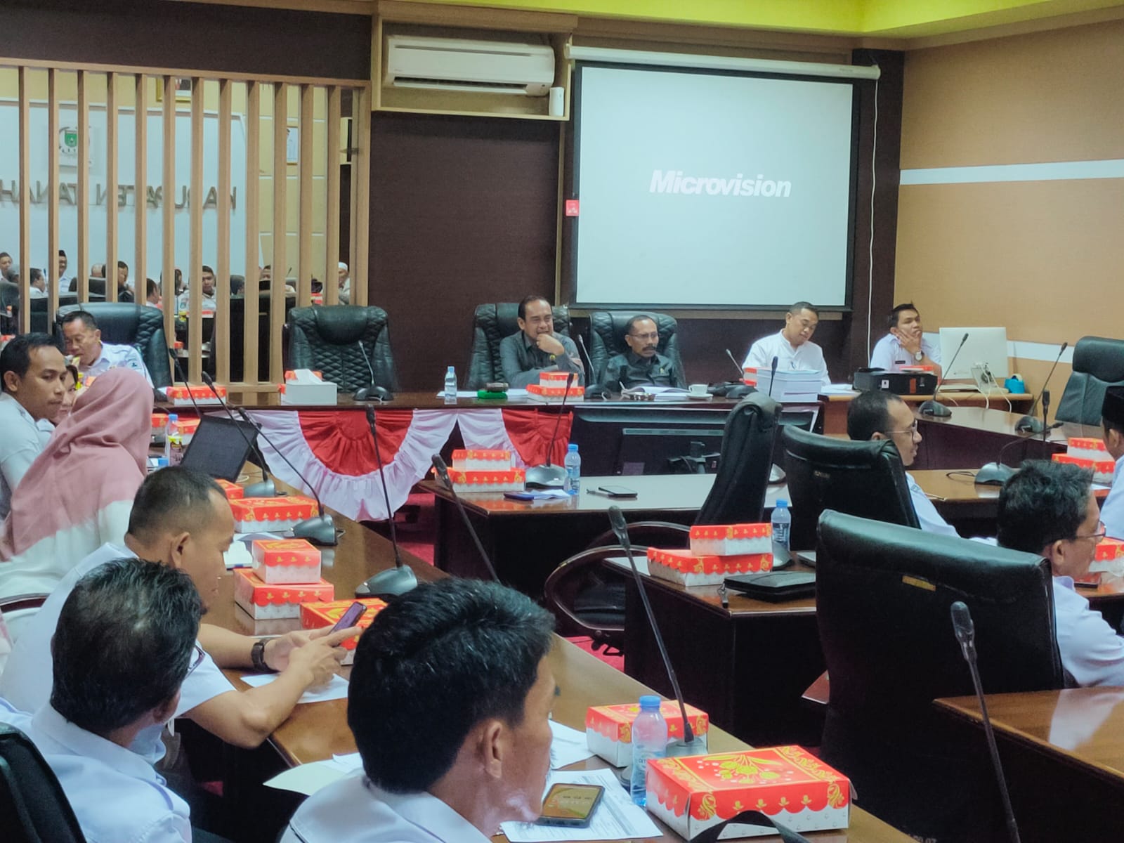 TANAH BUMBU – Dewan Perwakilan Rakyat Daerah (DPRD) Kabupaten Tanah Bumbu menggelar rapat kerja Bapemperda dengan SKPD terkait dan tenaga ahli dewan, dalam rangka pembahasan Raperda tentang Pajak Daerah dan Retribusi Daerah, Rabu (1/11).