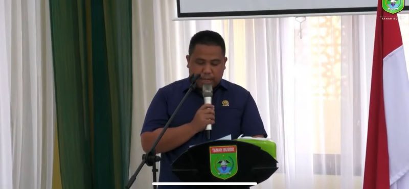 Ketua DPRD diwakili Ketua Komisi I DPRD Tanbu, Boby Rahman memaparkan pokok-pokok pikiran DPRD terhadap RPJPD Tanah Bumbu 2025-2045.