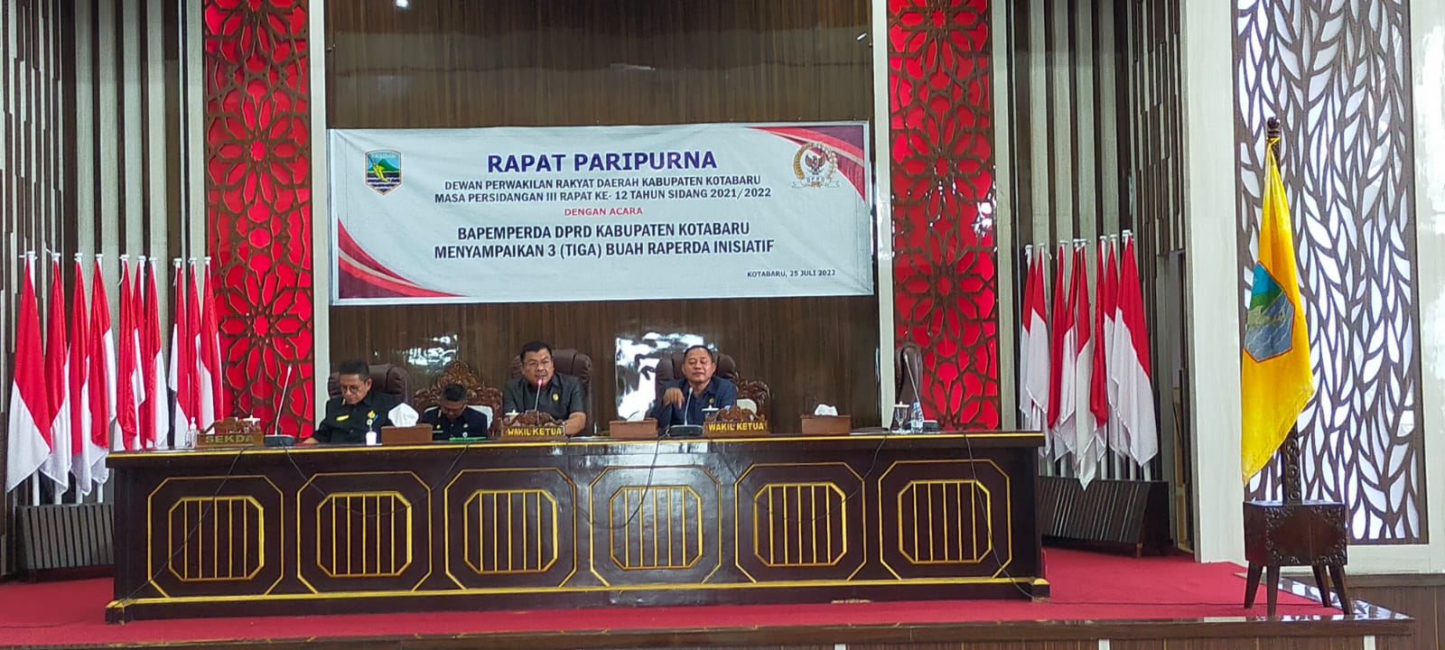 Agendanya, Badan Pembentukan Peraturan Daerah ( Bapemperda) menyampaikan tiga Raperda inisiatif. Rapat dipimipin Wakil Ketua DPRD Mukhni.
