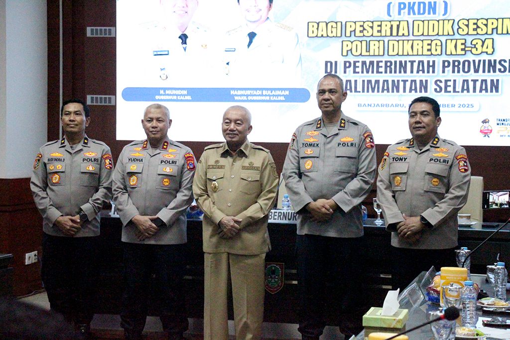 RETORIKABANUA.ID, Banjarbaru — Gubernur Kalimantan Selatan, H. Muhidin, menyambut hangat kehadiran para peserta Praktik Kerja Dalam Negeri (PKDN) Sekolah Staf dan Pimpinan Tinggi (Sespimti) Polri Dikreg ke-34 Tahun Anggaran 2025 dalam sebuah acara resmi yang digelar di Ruang Rapat P.M. Noor, Lantai 4 Kantor Gubernur Kalsel, Banjarbaru, Senin (8/9).