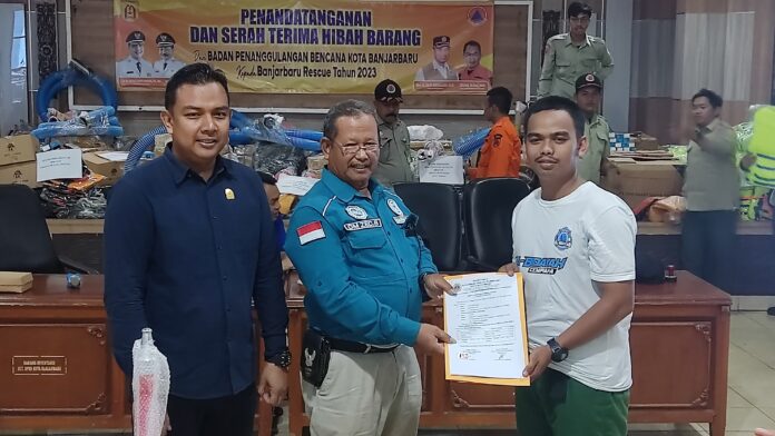 Banjarbaru – Pemerintah Kota Banjarbaru melalui Badan Penanggulanan Bencana Daerah, bersama puluhan anggota DPRD Banjarbaru, menggelar penandatanganan, sekaligus serah terima hibah barang kepada Tim Resque Banjarbaru, Selasa (5/12).