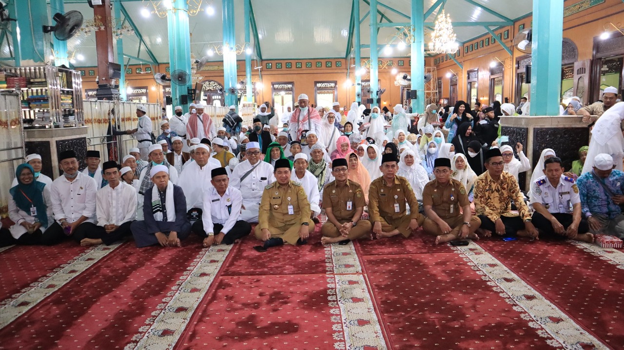 BANJARMASIN – Wali Kota Banjarmasin Ibnu Sina menyambut kedatangan jemaah haji tahun 2022 kloter 7 (kloter terakhir), Selasa (2/8), di Masjid Jami, Sungai Jingah Banjarmasin.