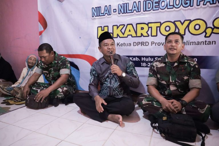 RETORIKABANUA.ID, Hulu Sungai Selatan — Wakil Ketua DPRD Provinsi Kalimantan Selatan, Kartoyo, mengapresiasi kuatnya pemahaman masyarakat terhadap nilai-nilai Pancasila saat menghadiri kegiatan Sosialisasi Revitalisasi dan Aktualisasi Nilai-Nilai Ideologi Pancasila (SOSREV) di Desa Ida Manggala, Kecamatan Sungai Raya, Minggu (19/4).