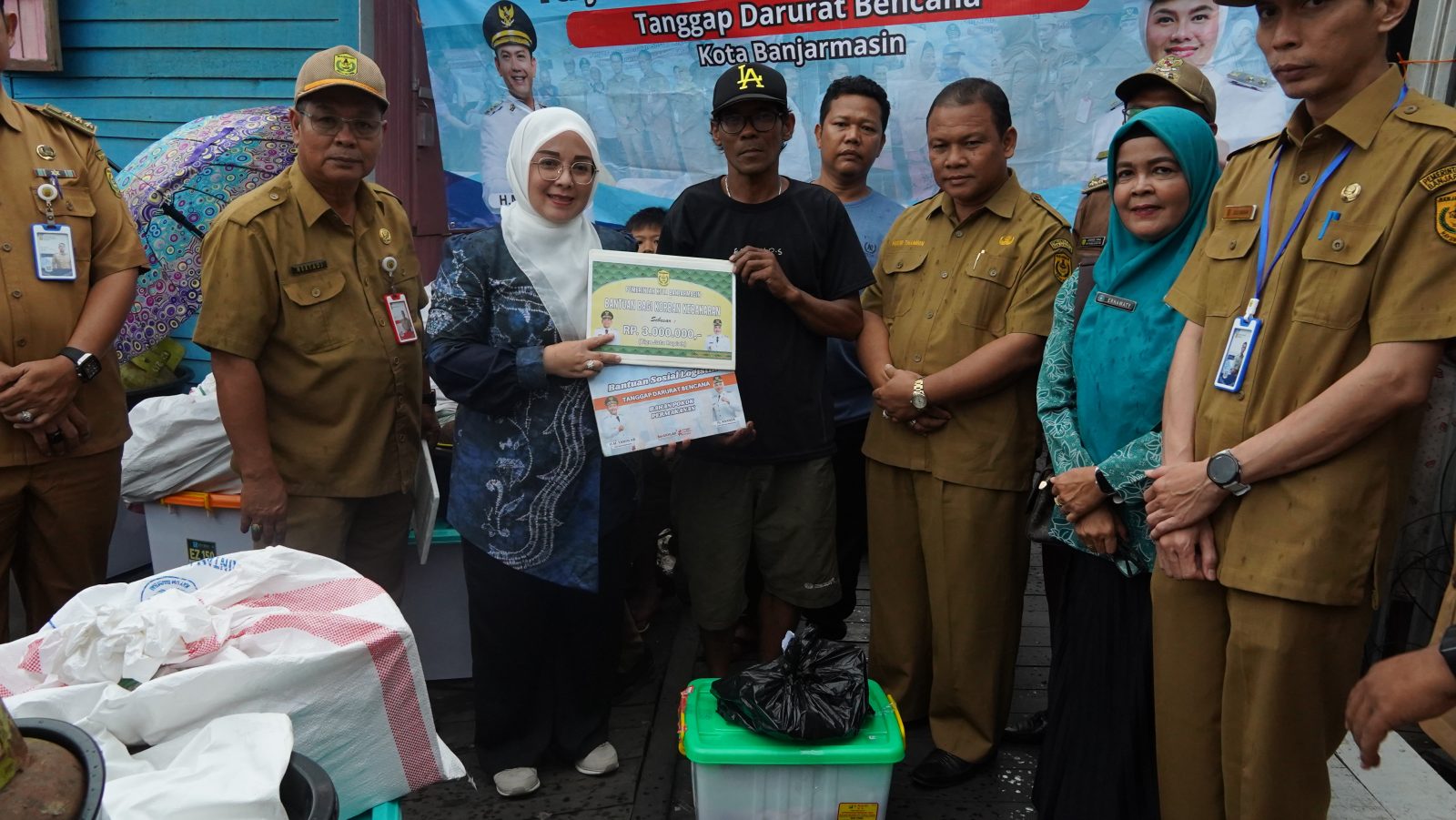 “Pertama-tama, ulun mewakili Bapak Wali Kota serta jajaran Pemkot menyampaikan rasa duka mendalam. Semoga bantuan ini bisa sedikit meringankan beban pian-pian semua, dan semoga Allah membalas dengan rezeki yang lebih baik,” ungkap Neli di hadapan warga yang mengungsi.