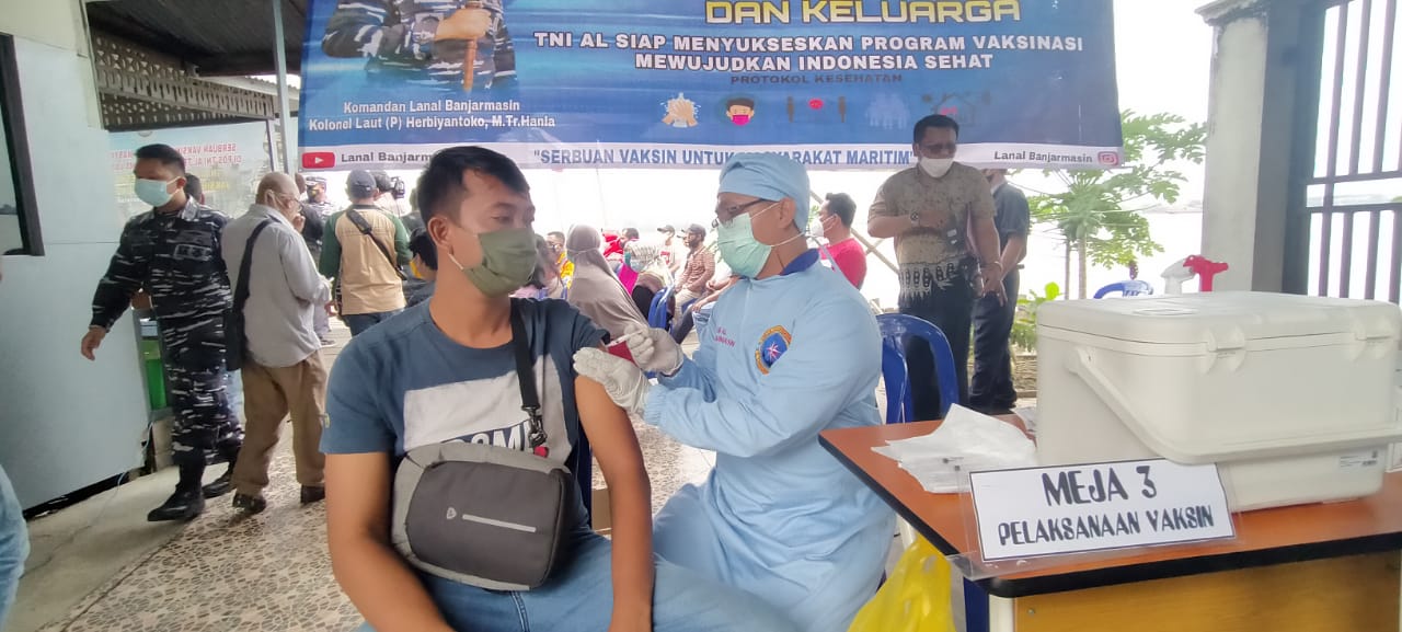 BANJARMASIN – Bertempat di Pos TNI AL Trisakti Pangkalan TNI Angkatan Laut (Lanal) Banjarmasin, kembali menggelar kegiatan serbuan Vaksinasi Covid-19, Sabtu (17/7/2021) pagi.