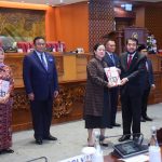 NASIONAL – Hasto Kristiyanto didampingi anggota Komisi X DPR RI dari Fraksi PDIP, Putra Nababan, disambut Ketua Dewan Pembina Revolusi Mental Kampus Pembangunan Karakter Bangsa Indonesia, Ermaya Suradinata.
