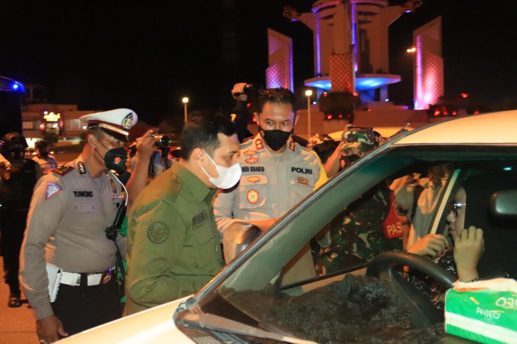 BANJARBARU-Wali Kota Banjarbaru HM Aditya Mufti Ariffin SH MH mengikuti kegiatan patroli gabungan PPKM, Jumat (15/10).