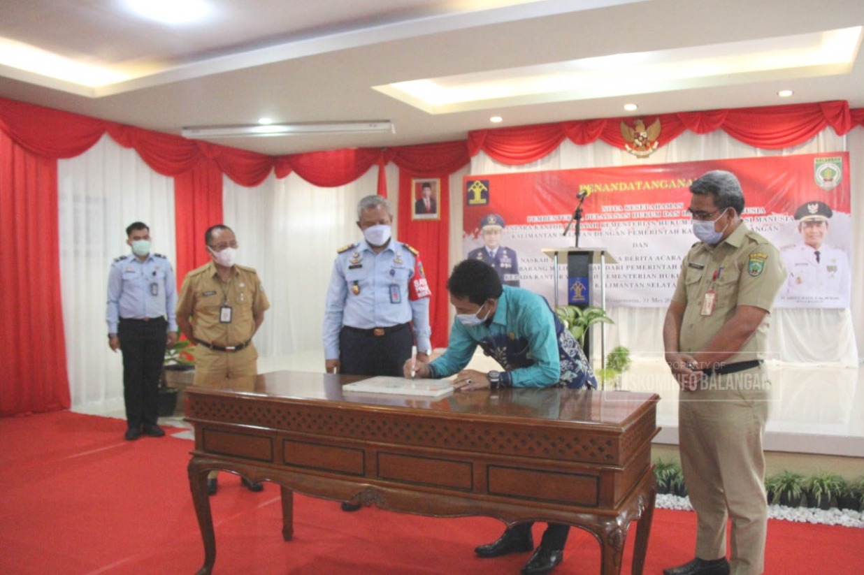 PARINGIN – Dalam rangka membentuk wujud pelayanan hukum dan HAM kepada masyarakat, Pemkab Balangan laksanakan penandatanganan nota kesepahaman bersama Kantor Wilayah Kementerian Hukum dan HAM Provinsi Kalimantan Selatan, Senin (31/5) bertempat di Kanwil Kemenkumham Kalsel, Banjarmasin.