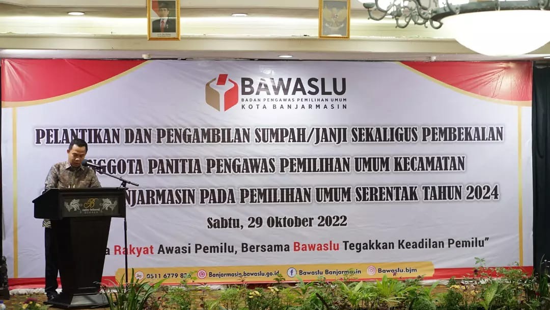 Pernyataan itu disampaikan Sekretaris Daerah Kota Banjarmasin Ikhsan Budiman pada pelantikan dan pengambilan sumpah anggota Panitia Pengawas Pemilu Kecamatan se-Kota Banjarmasin, Sabtu (29/10), di Swiss Bell Hotel.