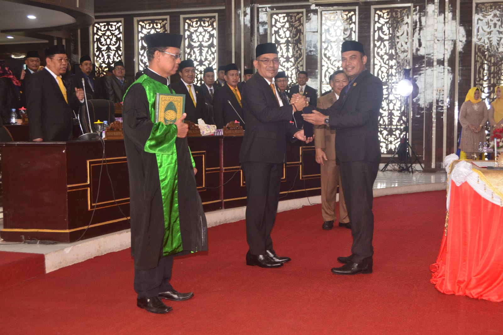 KOTABARU – Ketua DPRD Kotabaru Syairi Mukhlis melantik dan mengambil sumpah Arbani sebagai anggota dewan Pengganti Antar Waktu (PAW) sisa periode 2019-2024, Senin (17/10).