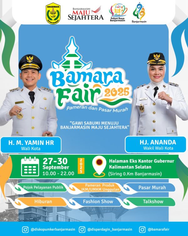 Byadmin27 September 2025RETORIKABANUA.ID, Banjarmasin – Dalam rangka menyambut Hari Jadi ke-499 Kota Banjarmasin, Pemerintah Kota Banjarmasin bakal menggelar event besar bertajuk Banjarmasin Maju Sejahtera (Bamara) Fair...