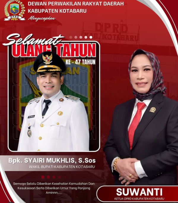 Byadmin17 April 2025RETORIKABANUA.ID, Kotabaru – Ketua DPRD Kotabaru, Suwanti, menyampaikan ucapan selamat ulang tahun kepada Wakil Bupati Kotabaru, Bapak Syairi Mukhlis, yang merayakan hari kelahirannya....