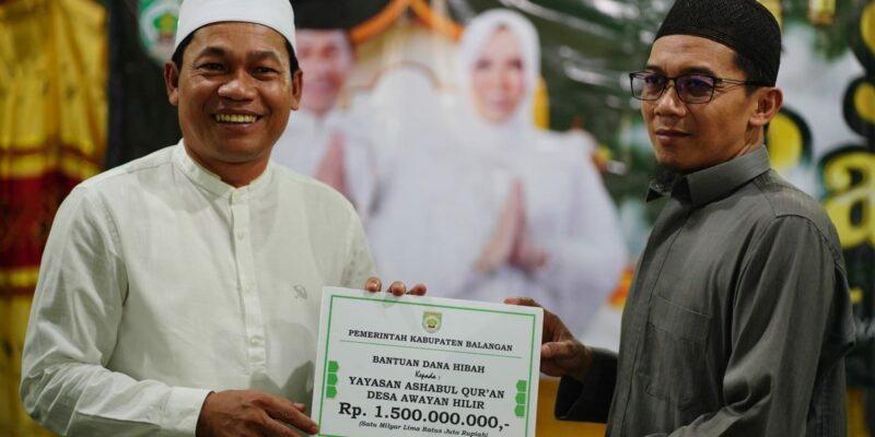 BALANGAN – Bupati Balangan, H Abdul Hadi menyerahkan bantuan dana hibah untuk tempat ibadah, Madrasah Ibtidaiyah Swasta Darussalam Awayan dan Yayasan Ashabul Quran...