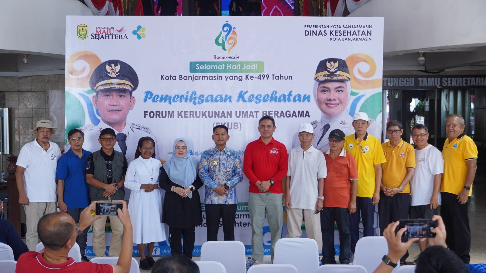 RETORIKABANUA.ID, Banjarmasin – Dalam rangka memperingati Hari Jadi ke-499 Kota Banjarmasin, Pemerintah Kota melalui Dinas Kesehatan menggelar kegiatan pemeriksaan kesehatan bagi tokoh lintas agama yang tergabung dalam Forum Kerukunan Umat Beragama (FKUB), Minggu (14/9). Kegiatan ini berlangsung di Lobby Balai Kota Banjarmasin.