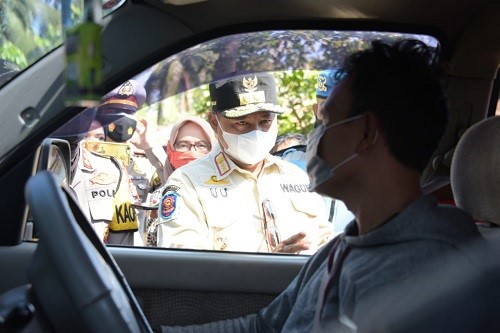 Selain itu, saat melakukan peninjauan, Pak Uu pun memutarbalikkan satu kendaraan yang diketahui membawa sekitar delapan pemudik dari Bekasi menuju Cilacap.