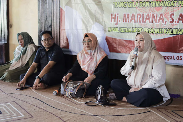 TANAH BUMBU – Wakil Ketua Dewan Perwakilan Rakyat Daerah (DPRD) Provinsi Kalimantan Selatan (Kalsel) Hj. Mariana, menggelar Sosialisasi Wawasan Kebangsaan di Desa Sungai Cuka, Kabupaten Tanah Bumbu (Tanbu), Sabtu (6/4).