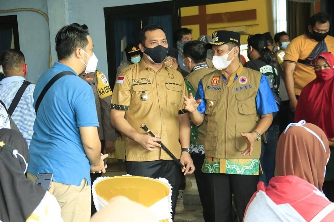 BANJARBARU – Bertempat di Gedung Bina Satria Banjarbaru Sabtu, 17/7/21. Walikota Banjarbaru H M Aditya Mufti Ariffin didampingi Wakil Walikota Banjarbaru Wartono saat melakukan peninjauan vaksinasi massal.